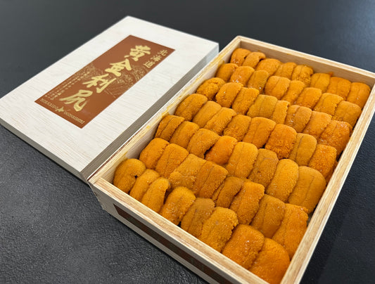 Harvested from the pristine waters around Rishiri Island, this Uni is prized for its vivid color, creamy texture, and perfect umami balance. Loved by Michelin-starred chefs, its flavor comes from mineral-rich seas and premium kelp beds.