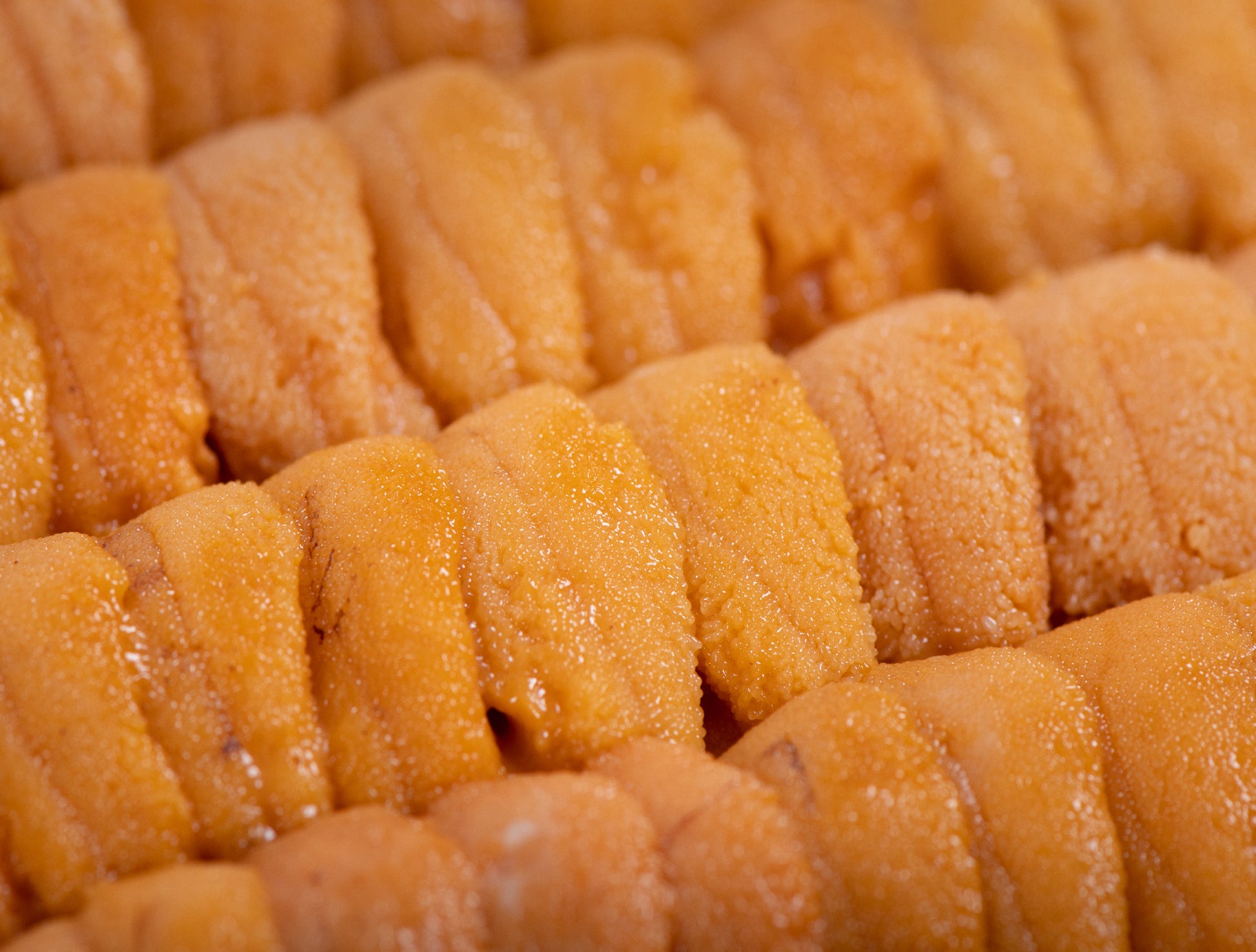 Sourced from our home in Hokkaido, Gokujo AAA Uni represents the highest grade available at daily auction — selected from over 1,000 trays each morning. Gokujo (極上) means "exceptional quality" in Japanese, and it's the top tier in the auction grading system: AAA, AA, A+, A, and regular. Only Uni that meets strict standards for color, shape, sweetness, and texture earns this grade. It's also called Mutenka (無添加), meaning additive-free — no alum or preservatives are used because only AAA-grade Uni can hold its shape naturally. You taste pure Uni, nothing else.